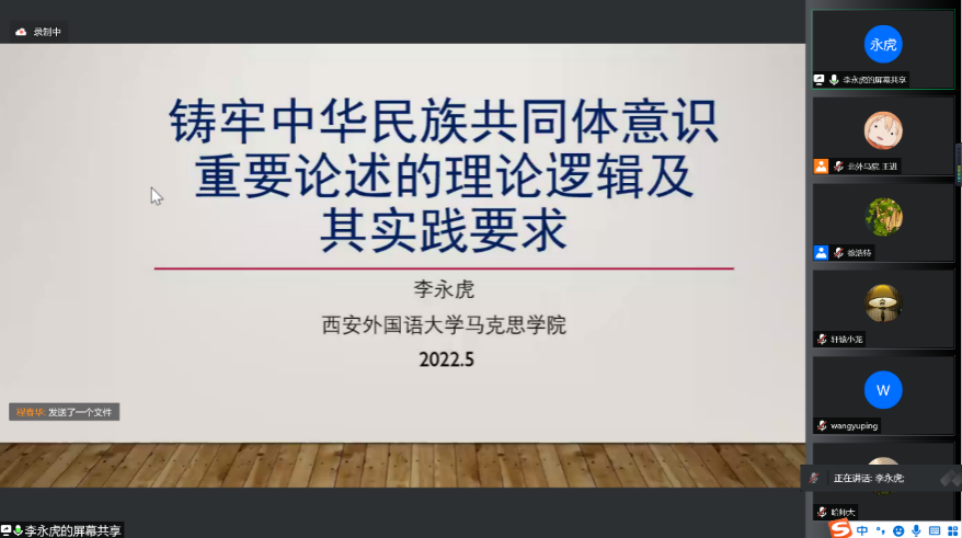 在第二阶段发言中,西安外国语大学ballBET贝博BB艾弗森副院长李永虎教授的报告题目为《铸牢中华民族共同体意识重要论述的理论逻辑及其实践要求》,他从共同体的希腊语起源和马克思关于两种共同体的思想出发,论证了铸牢中华民族共同体意识的重要论述是对马克思主义的继承与创新。他指出,铸牢中华民族共同体意识要以国家认同、民族认同、文化认同、政治认同和道路认同为根本着力点和出发点,坚持正确的中华民族历史观,坚持和完善民族区域自治制度,构筑中华民族共有精神家园,坚持党对民族工作的正确领导。