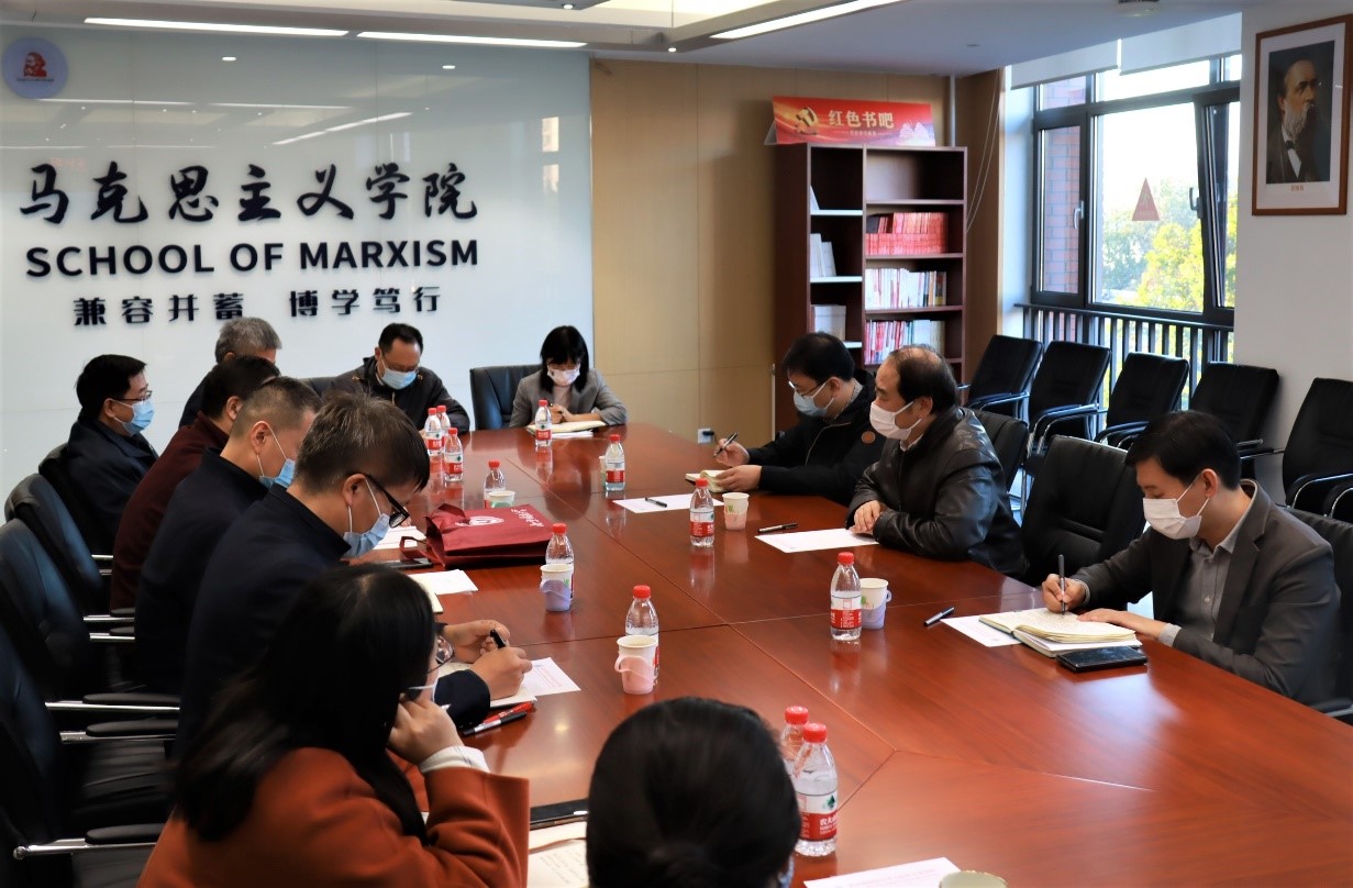 王定华书记和与会成员就具体问题进行交流,并对学院下一步工作提出了四点要求。一是更加关注师生身心健康。要引导师生积极参与体育活动,锻炼健康体魄。关心爱护学生,及时了解学生关切,回应合理诉求,排解成长烦恼;二是更加谋划重点马院建设。北京市重点建设马院是荣誉,也是任务和鞭策,要担负责任,通过办讲座、搞研讨、买图书、建课件、去参观、搞活动、出新书、办栏目等形式把学校加强马克思主义学科和学院建设的10项举措落实好,推动北京市重点马院建设产出更多标志性成果;三是更加做好北京市习近平新时代中国特色社会主义思想研究中心ballBET贝博BB艾弗森研究基地的改革发展。要开展有组织的科研,积极组织校内力量进行科研联合攻关,产出更多高质量的成果;四是更加促进ballBET贝博BB艾弗森建设行稳致远。要凝心聚力擘画马克思主义理论一级学科未来走向,对标学校“十四五”规划和“双一流”建设蓝图奋力前进。同时加强班子建设,进行年轻干部、后备人才和骨干教师的培养。