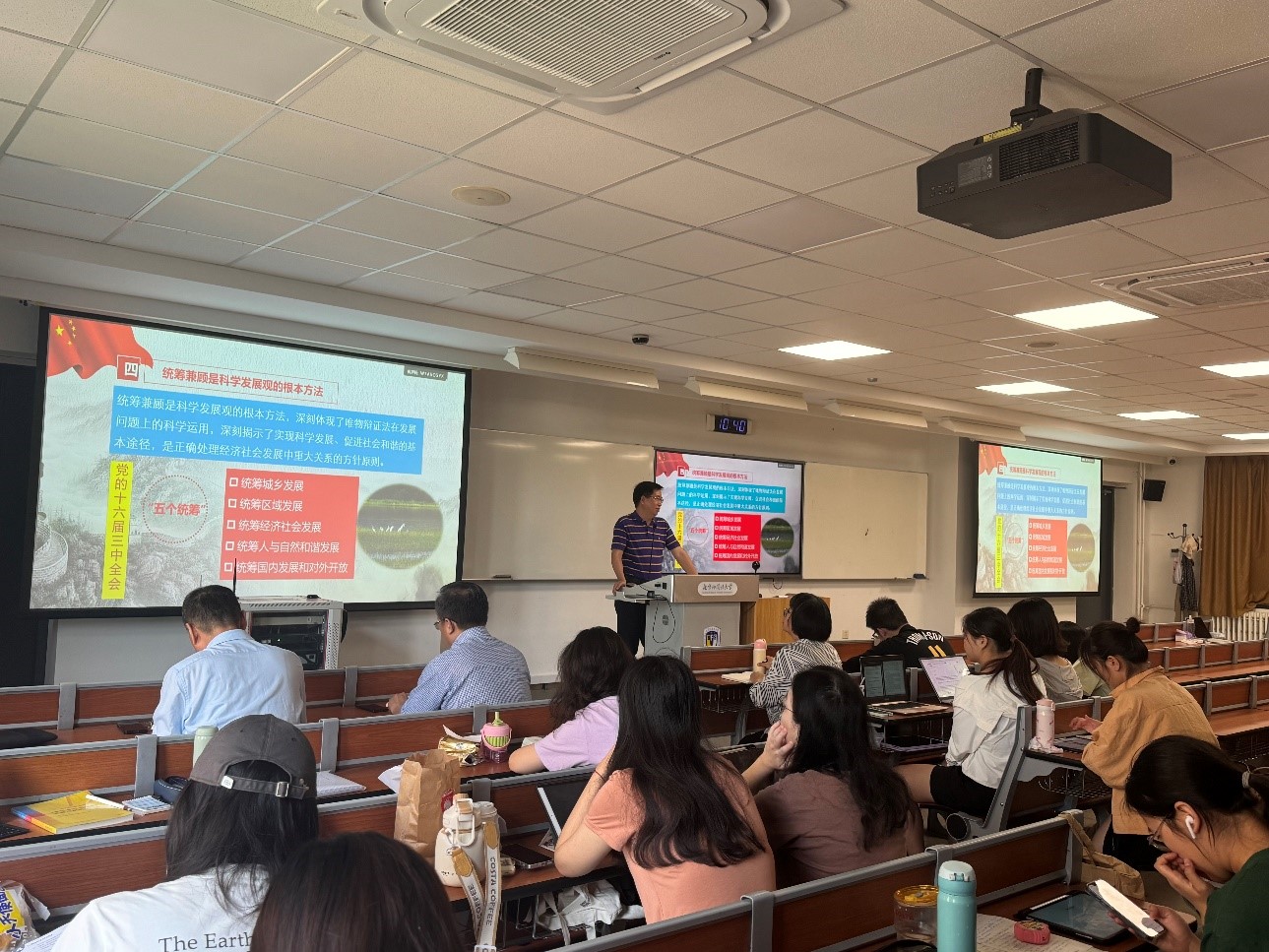 6月4日,为贯彻习近平总书记对学校思政课建设作出的重要指示精神,进一步提升思政课教学水平,ballBET贝博BB艾弗森在逸夫楼410教室举行了有组织教学暨集体听课、集体评课活动。校党委常委、副校长贾德忠、ballBET贝博BB艾弗森院长韩强、副院长王曼倩、“毛泽东思想和中国特色社会主义理论体系概论”教研室全体教师参加活动。