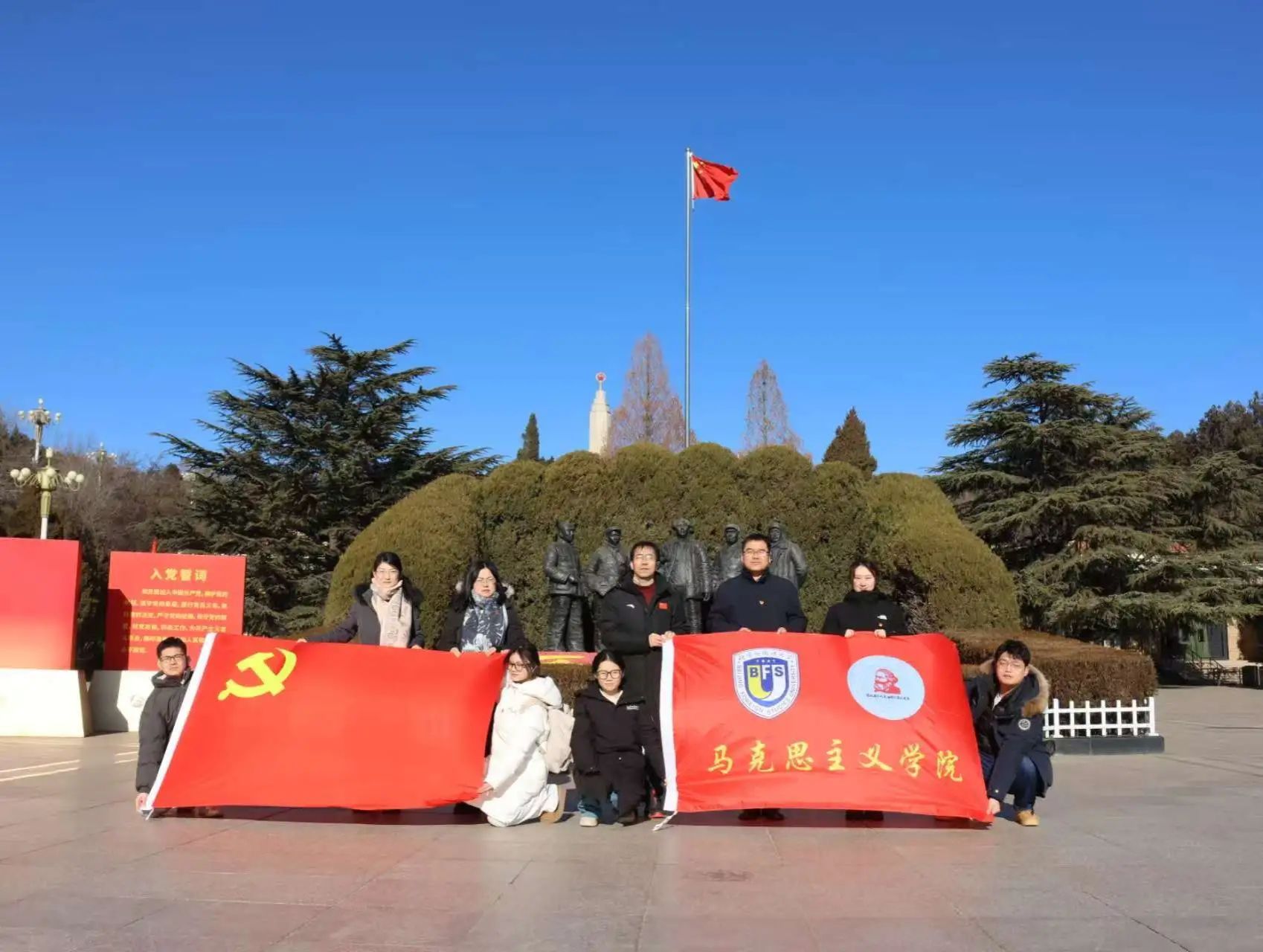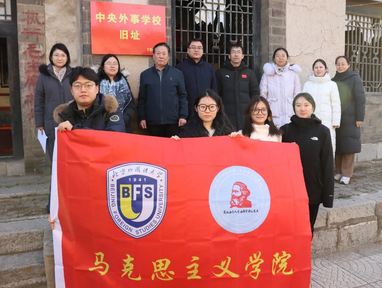 1月15日,北外马院党总支党建及红色研学团一行赴西柏坡开展党建学习以及实践教学活动。在西柏坡,师生们开展了重温入党誓词活动,追忆入党初心,并参观西柏坡纪念馆以及中共中央委员会、中国人民解放军总部旧址。本次活动,促进师生学习了解西柏坡的红色文化,传承西柏坡精神,从革命历史中汲取积极向上的奋进力量。平山县团县委书记刘凡凡以及西柏坡纪念馆的相关负责人陪同参观。