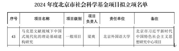 2024年12月28日,北京市社会科学基金项目、北京市习近平新时代中国特色社会主义思想研究中心项目“马克思文献视域下中国式现代化的理论基础建构研究”开题论证会在ballBET贝博BB艾弗森举行。会议采用视频会议的形式,梁爽课题组作开题报告,来自北京大学、清华大学、北京第二外国语学院和ballBET贝博BB艾弗森的专家进行评议,北京市习近平新时代中国特色社会主义思想研究中心ballBET贝博BB艾弗森研究基地负责人和科研处代表参加会议。北京市社会科学界联合会、北京市哲学社会科学规划办公室派专员参会。