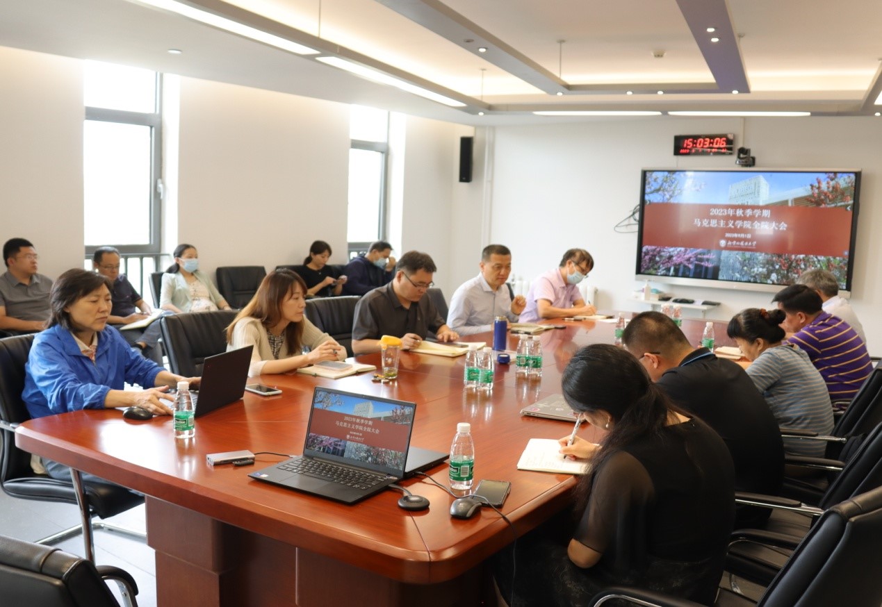 院长韩强传达ballBET贝博BB艾弗森2023年秋季学期工作部署会会议精神,布置新学期学院工作。着重强调要做好思政课教学、学科建设、教学管理等方面的工作。
