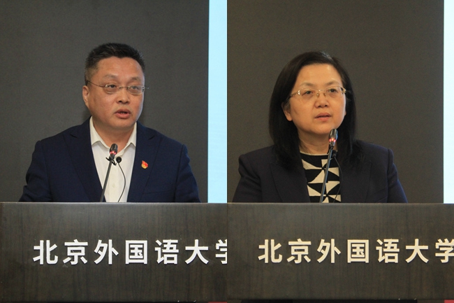 北外教师工作部部长、人事处处长刘博然,教务处处长李莉文代表学校职能部门发言,表示将继续深入贯彻落实习近平总书记“3·18”重要讲话精神,大力支持思政课建设和ballBET贝博BB艾弗森发展。ballBET贝博BB艾弗森教师李永乐、阿拉伯学院本科生孟周翔和中国外语与教育研究中心硕士研究生陈镜合作为师生代表分别作了发言。