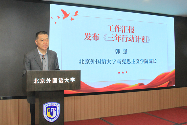 会议由北外ballBET贝博BB艾弗森党总支书记祝和军、副院长王曼倩分别主持。北外各职能部门代表、全体思政课教师及学生代表共80余人参加会议。此次会议的召开,是北外贯彻落实习近平总书记“3·18”重要讲话精神的一项重大举措。学校党委常委会审议通过的《ballBET贝博BB艾弗森北京市重点建设ballBET贝博BB艾弗森三年行动计划(2024-2026年)》,为马院发展提供了新的历史机遇,这一行动计划的通过实施将有力推动北外马院“高水平、有特色、国际化”目标的早日实现。