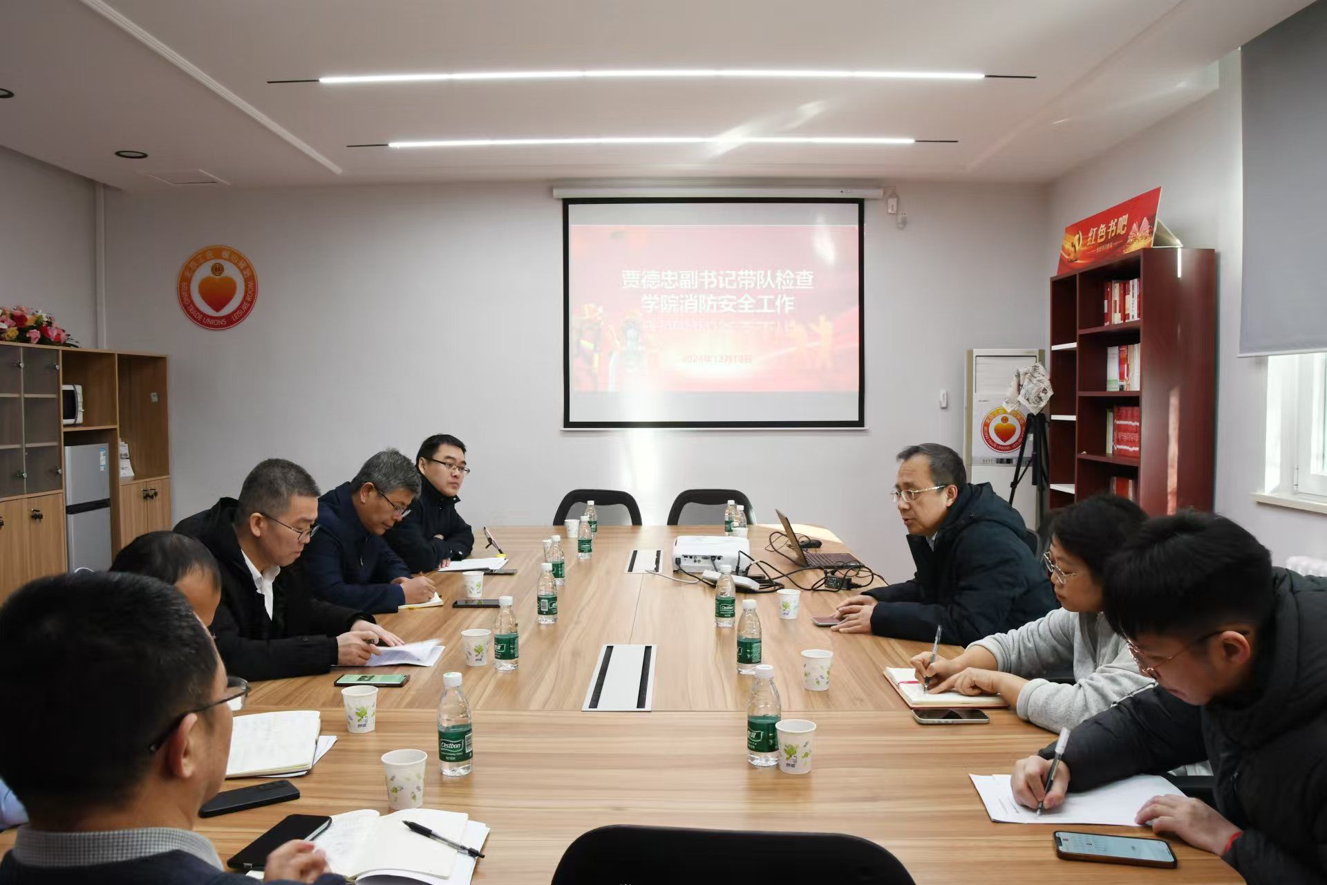 12月10日至15日,学院进行了工作动员,并要求学生对所住宿舍进行安全自查。16日至17日,学院领导、办公室负责人、辅导员分别带队,对学院办公区域、教师办公室、学生宿舍进行全面检查。对检查中发现的问题,学院领导及时指出并要求限期整改。随后,学院召开了消防安全检查反馈会。