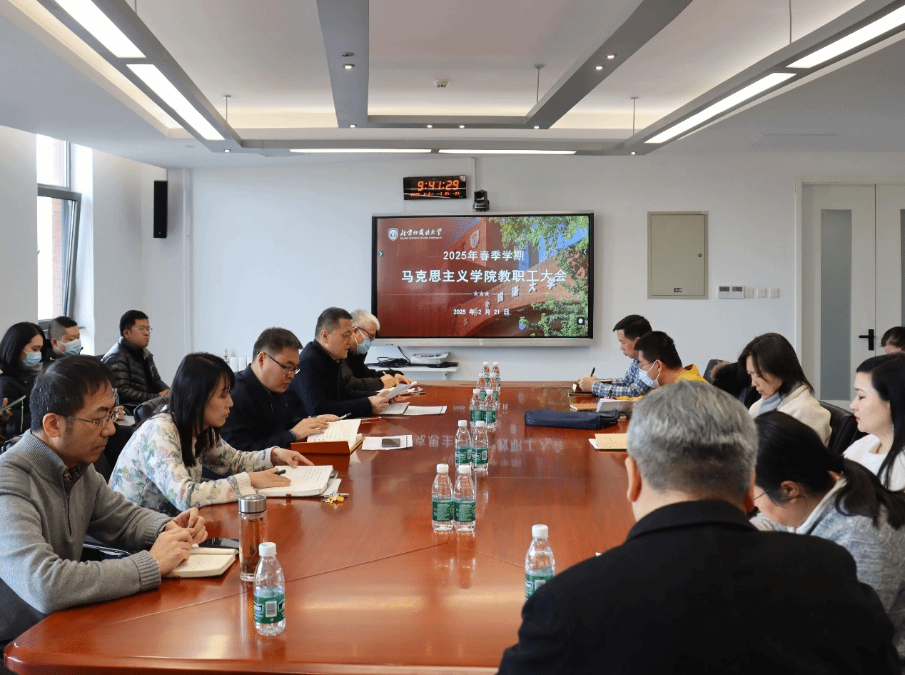 院长韩强传达了ballBET贝博BB艾弗森2025年春季学期工作部署会精神,围绕《ballBET贝博BB艾弗森2025年工作要点》的要求,结合本院实际,布置新学期相关工作。他强调新学期要进一步加强习近平新时代中国特色社会主义思想的学理化研究阐释,高质量办好思政课,提升教学科研和学科建设水平,抢抓发展机遇,推动“高水平、有特色、国际化”的北外马院建设再上新台阶。