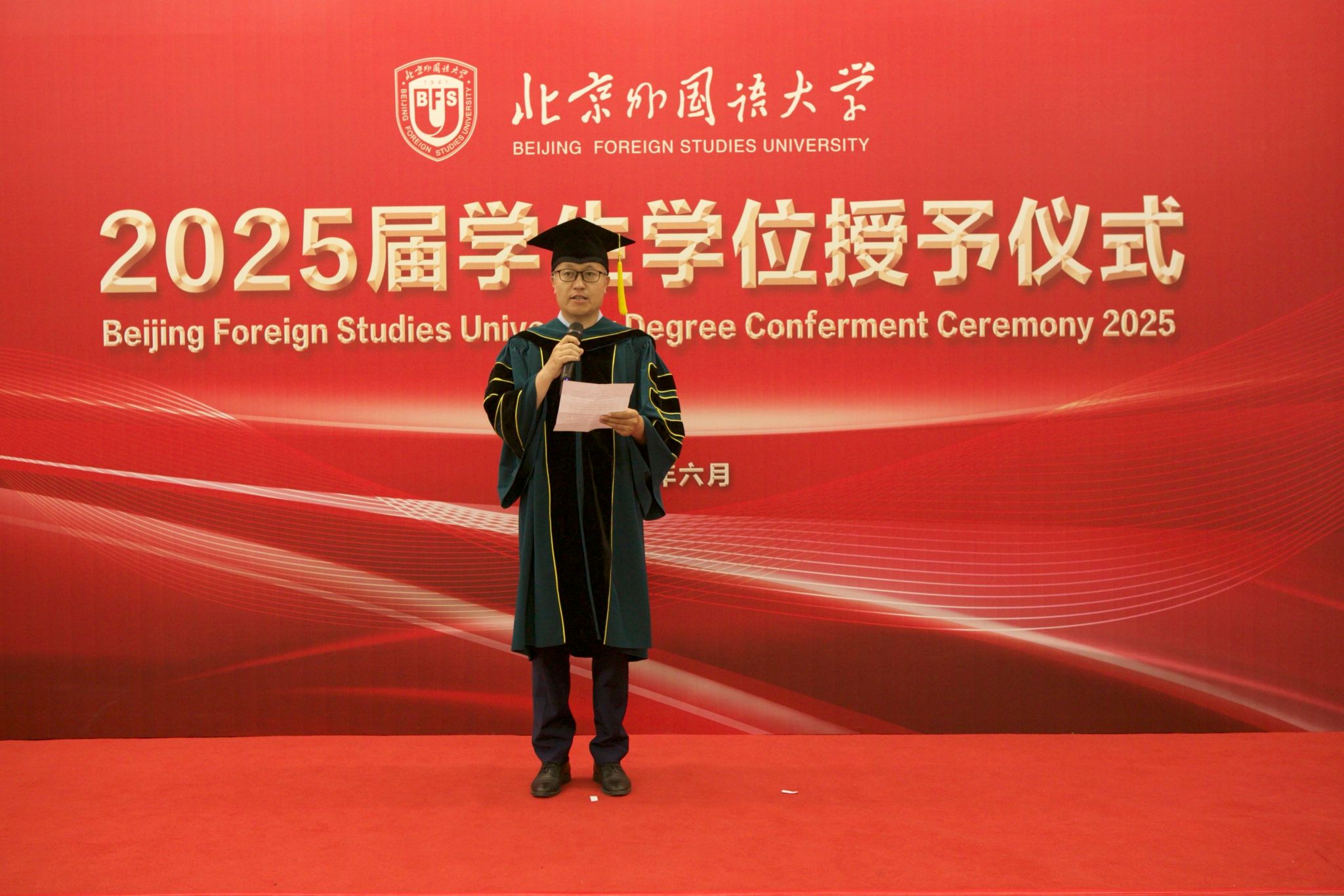 6月23日上午,ballBET贝博BB艾弗森于北外东校区晨读厅举办2025届毕业生学位授予仪式。ballBET贝博BB艾弗森院长、学位评定分委员会主席韩强、副院长孙磊,硕士研究生导师代表、2025届全体毕业生及家长代表参加了学位授予仪式。仪式由研究生教研室主任赫雪主持。