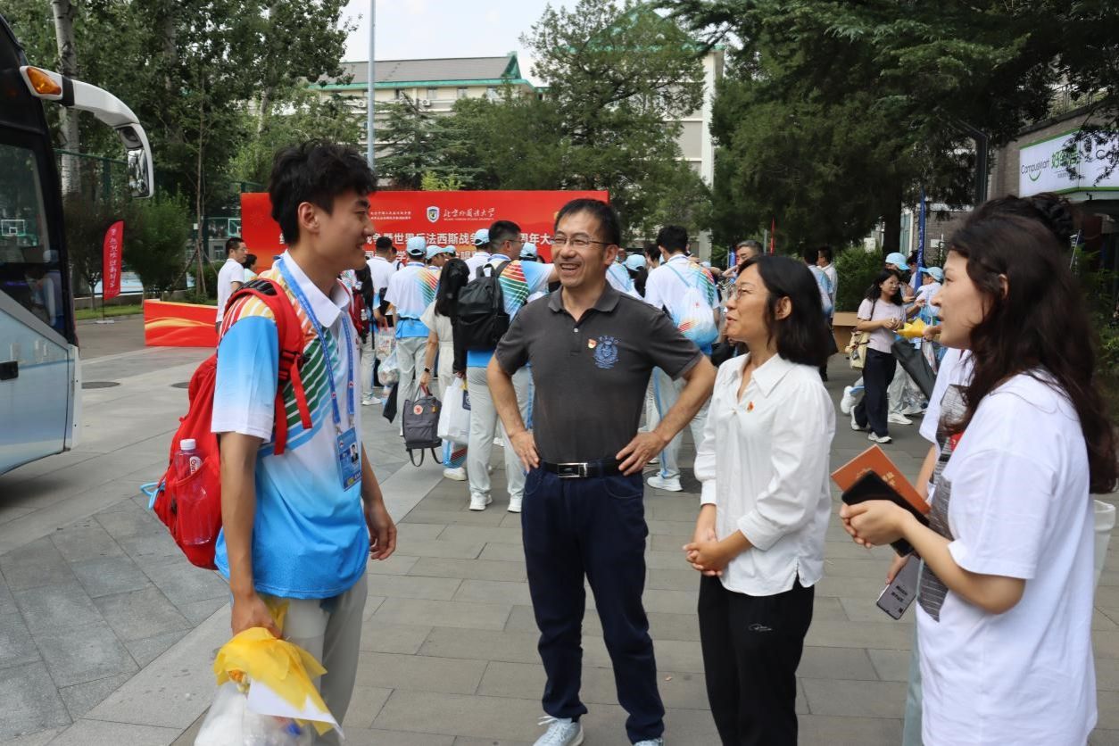 9月3日下午,ballBET贝博王昊同学圆满完成纪念中国人民抗日战争暨世界反法西斯战争胜利80周年大会志愿服务任务,从大会会场顺利返校。学院老师及学生代表热情迎接王昊同学凯旋,向他致以慰问。