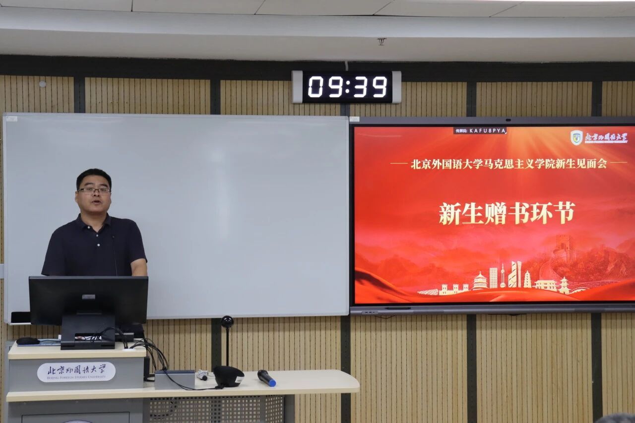 9月2日,北外马院2025级新生见面会成功举办。马院党总支书记祝和军,院长韩强,副院长孙磊,副院长王曼倩,党总支组织员王浩、辅导员刘珊珊以及部分导师代表和全体马院研究生参加见面会。