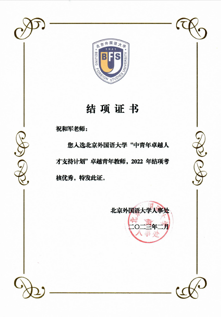 ballBET贝博祝和军副教授2019年入选ballBET贝博BB艾弗森“中青年卓越人才支持计划”卓越青年教师,2022年结项考核为优秀。