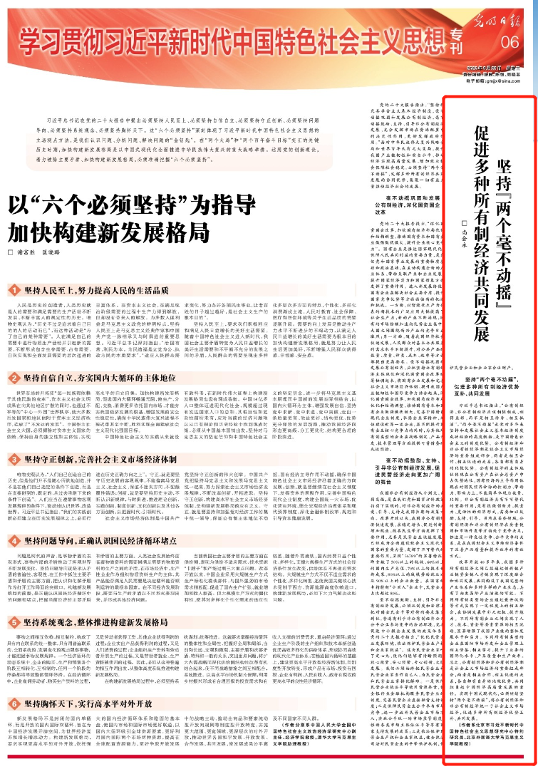 6月28日,《光明日报》刊登ballBET贝博BB艾弗森教授尚会永的文章:《坚持“两个毫不动摇” 促进多种所有制经济共同发展》。