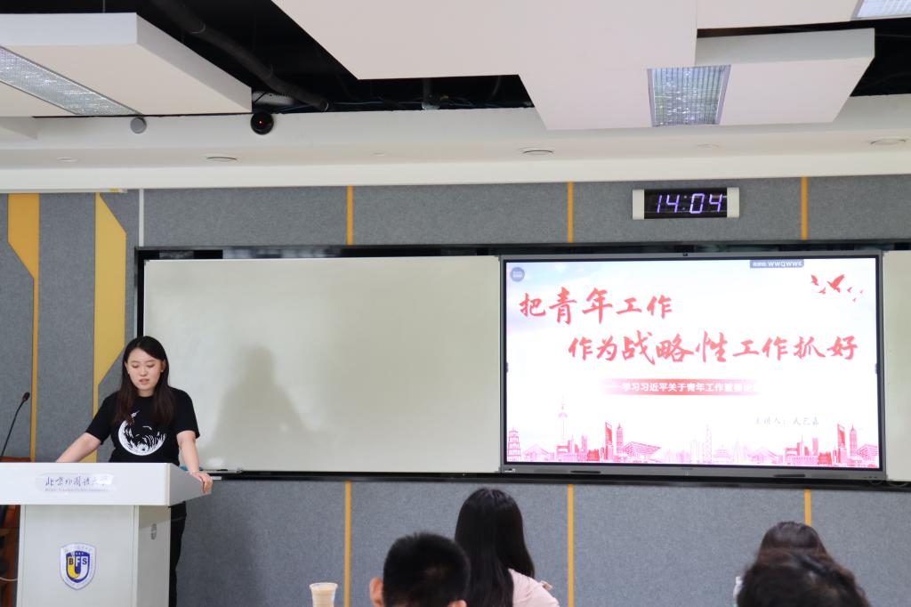 2023年5月26日,ballBET贝博BB艾弗森研究生党支部在逸夫楼213召开学习贯彻习近平新时代中国特色社会主义思想主题教育相关活动,ballBET贝博BB艾弗森研究生党支部书记武艺嘉以“把青年工作作为战略性工作抓好”为题讲授主题教育专题党课,崔凡页、高雨两名发展对象作交流分享,研究生党支部全体党员、预备党员以及入党积极分子参加会议。